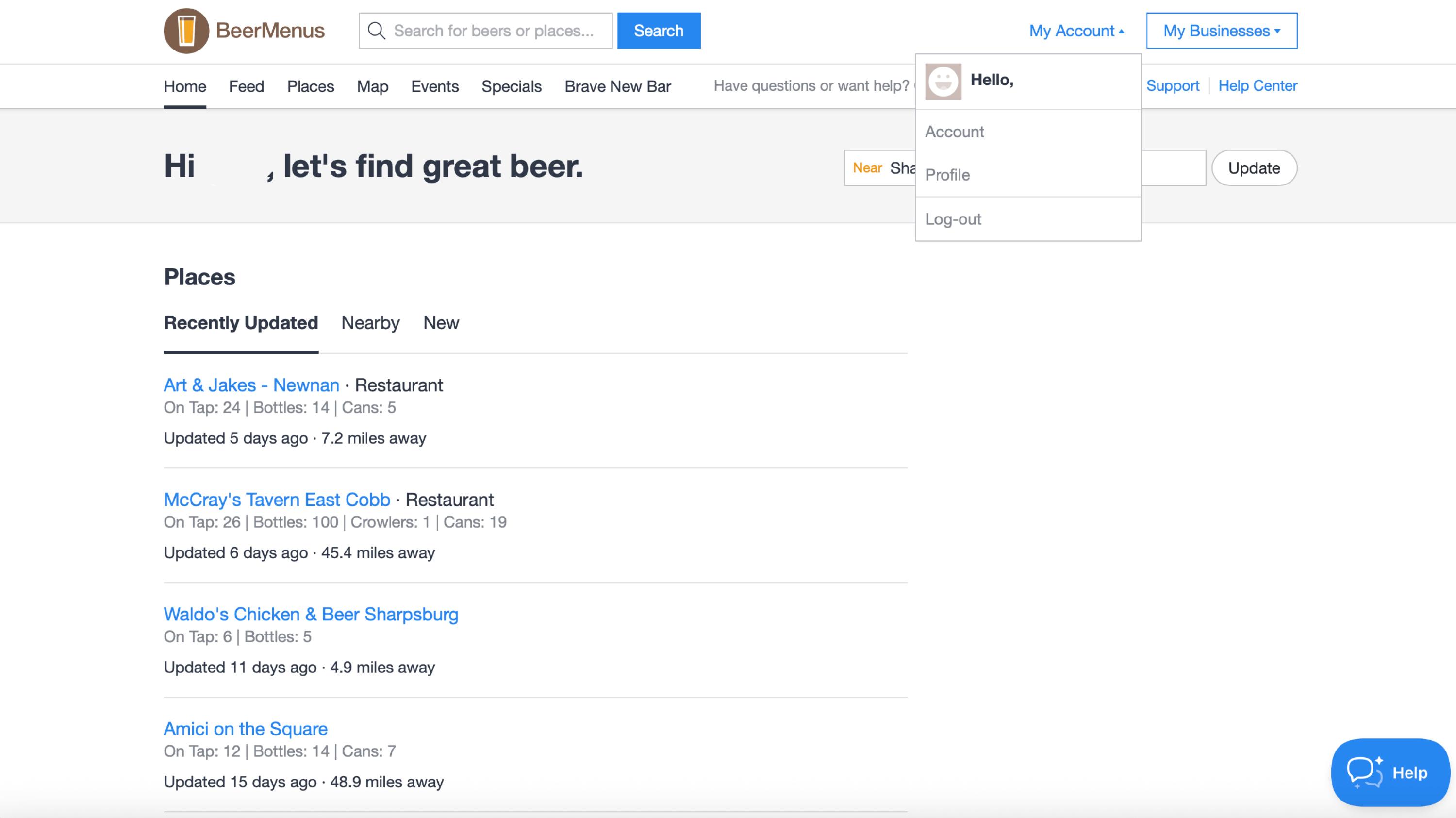 Navigate to your BeerMenus Account page.